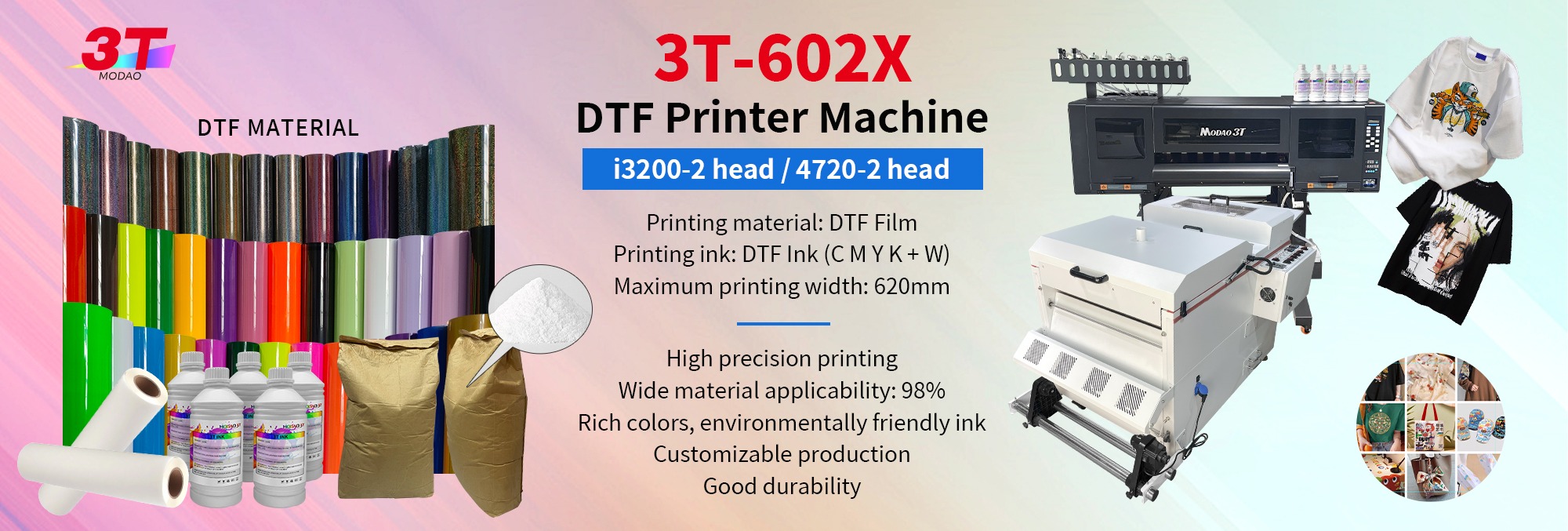 Productos principales:Máquina de impresión de publicidad y prendas de vestir, tinta y consumibles DTF/tinta UV y eco-solvente, hoja de PVC, Pancarta y pegatina flexible