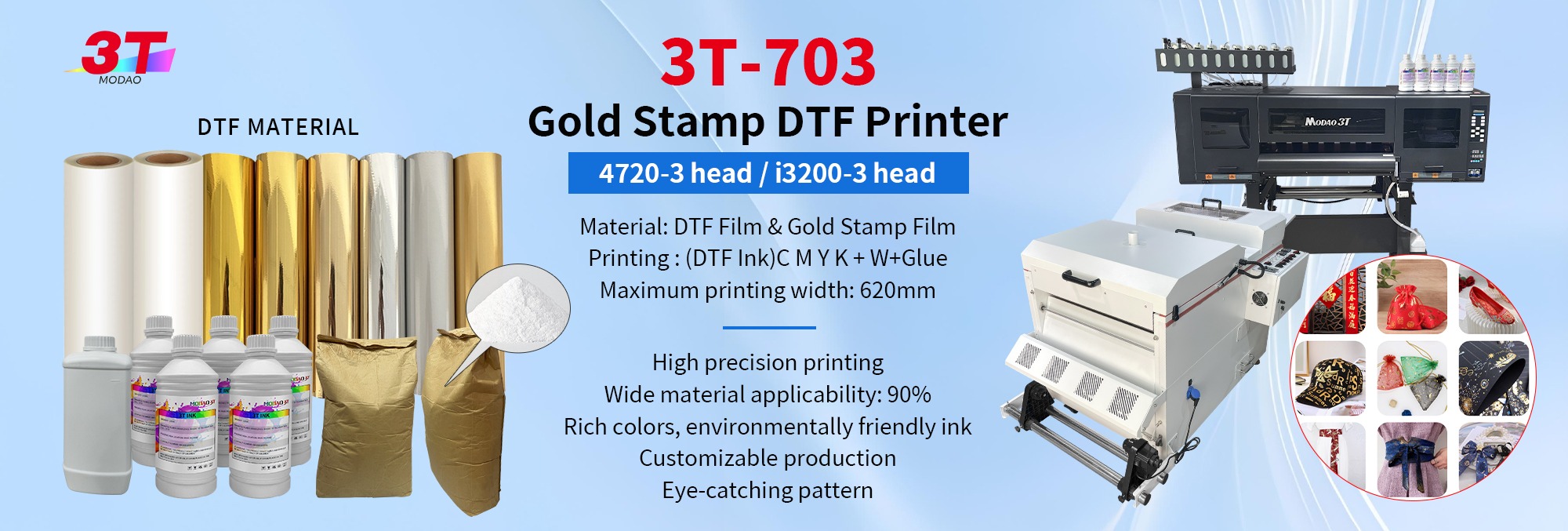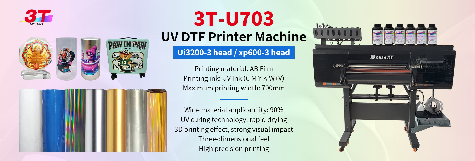 MODAO 3T Impresora de Transferencia UV DTF de 4 Cabezales de Alta Velocidad Ancho A3 Grado Industrial 140KG Ligero para Sustratos Duros